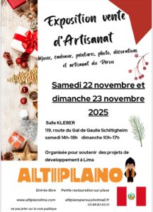 L’association Altiplano organise une exposition-vente d’Artisanat, les samedi 22 et dimanche 23 novembre à la Salle Kléber.