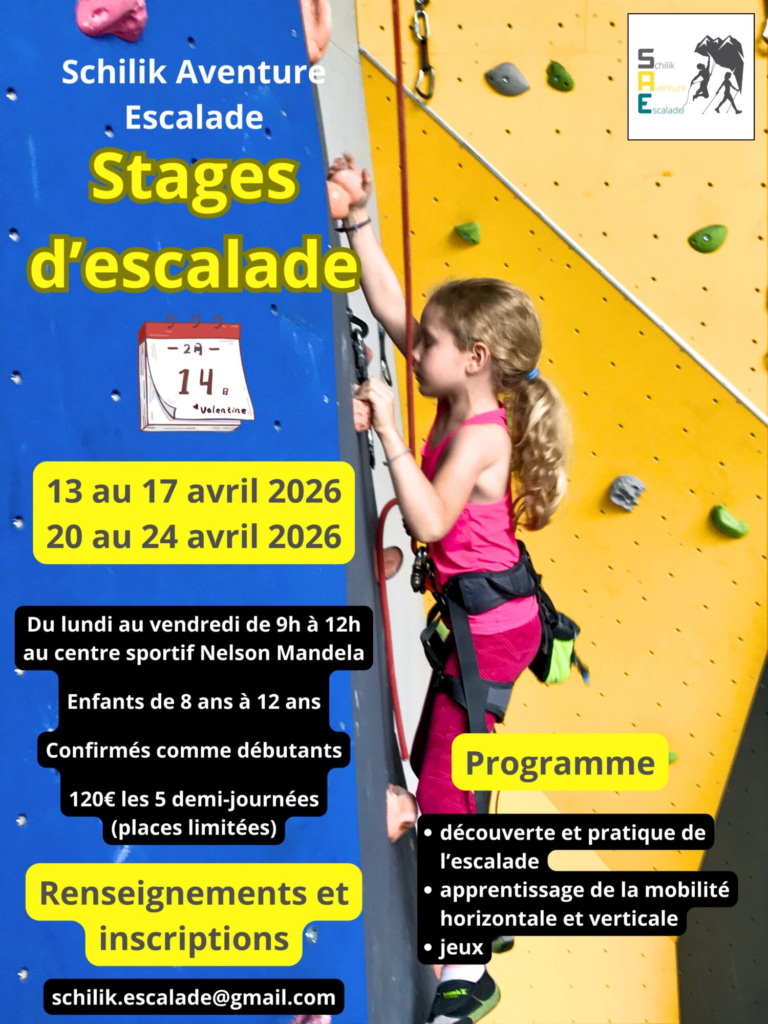Si votre enfant souhaite participer, vous pouvez les contacter pour réserver une place : schilik.escalade@gmail.com
